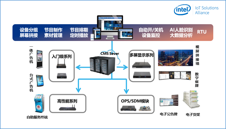 为了更好的迎合行业的发展趋势,向零售业输送前沿的营销理念和模式,驱动零售行业迈向数字化、智慧化的运营模式,非凡娱乐科技经过多年的行业经验积累和对客户需求的探索,通过集成Intel®Movidius视觉识别技术和OpenVINOTMAI视觉学习技术,自主研发了一套GDSM智慧商显管理系统平台,加上非凡娱乐科技多年来在商显行业的产品开发经验,已整合成为一套完整的智慧商显整体解决方案。目前GDSM智慧商显解决方案已成熟的应用于商超零售、品牌餐饮等多个行业,并获得了Intel®MRS市场方案认证。