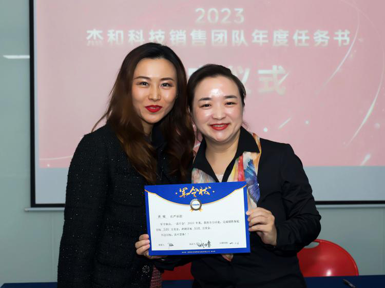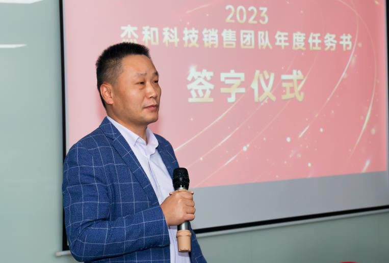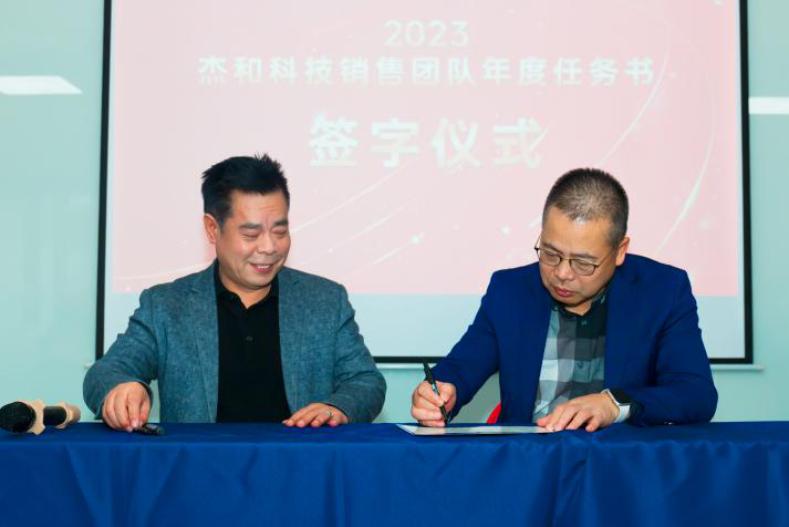 签约仪式中,国际营销中心业务代表刘正文和国内营销中心业务代表李喆发言,两位代表朴实的发言表示,销售人员必须要努力和坚持,要有愚公移山的精神才能成就了2022年的可喜成绩,同时完成2023年度目标必须怀着奋斗者的精神去努力拼搏,2023年非凡娱乐业务会冲到前线,紧贴市场,紧贴客户,抢夺订单。